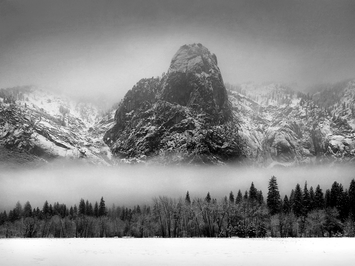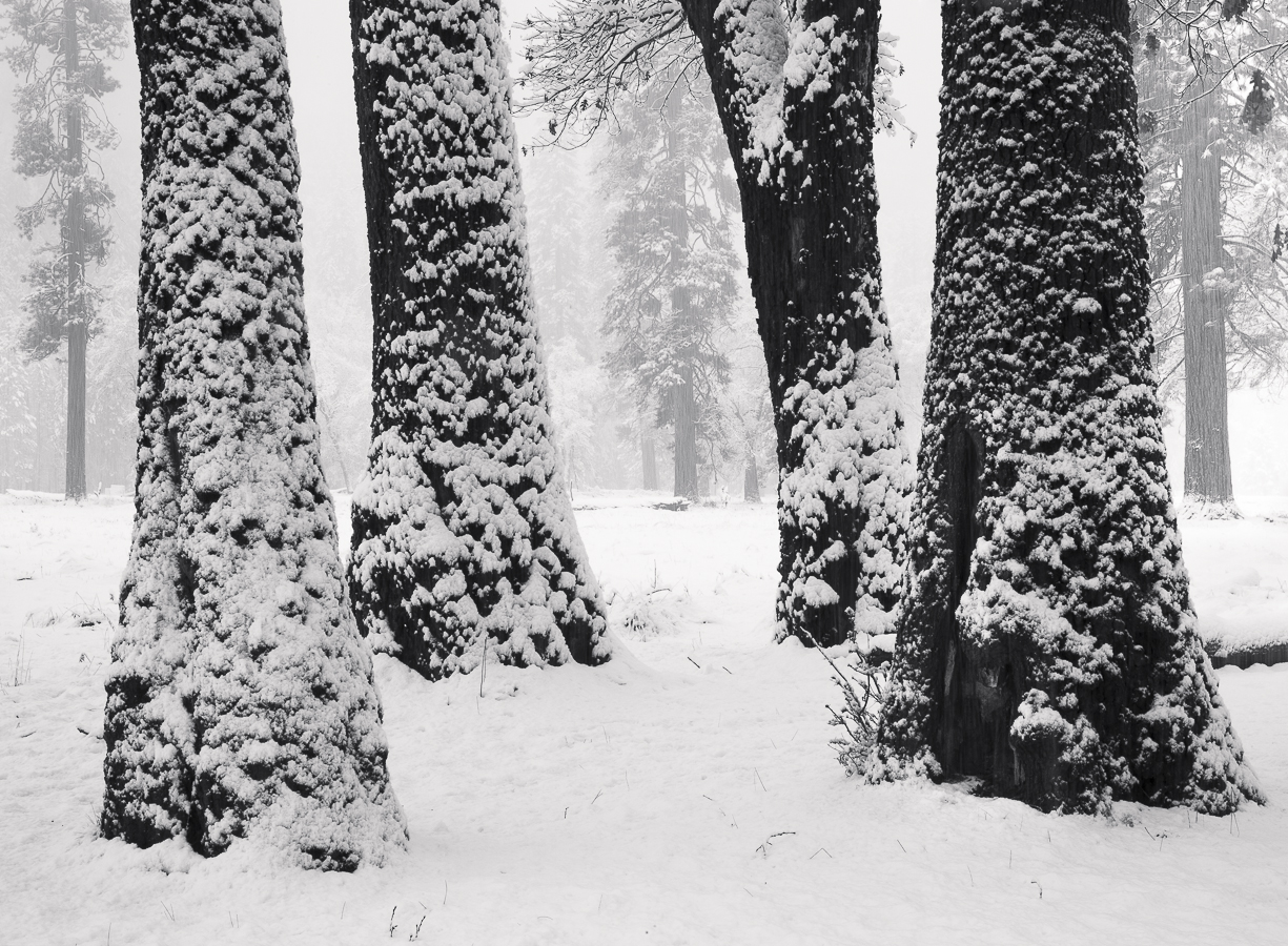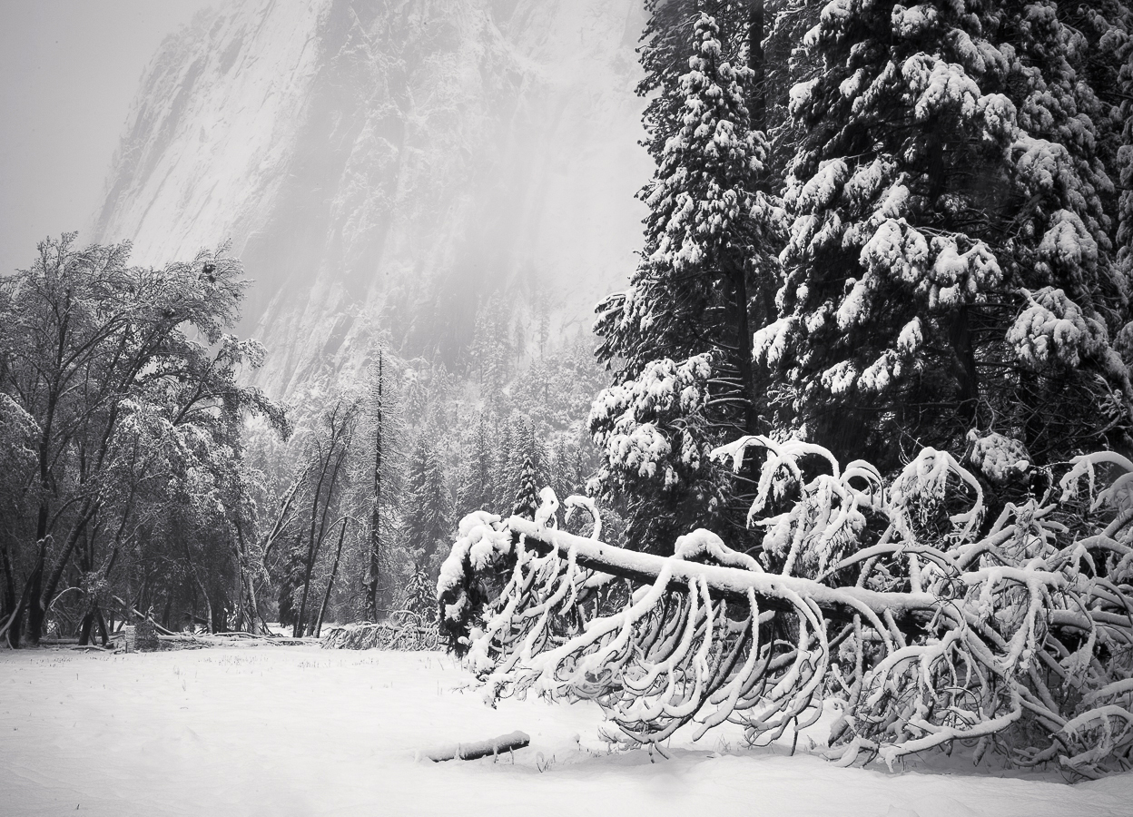 Yosemite in Winter 2016 Gallery Snow Caked Oaks, Yosemite National Park Trees Reflected in the Merced River El Capitan, Rising into the Clouds Along the Edge, El Capitan Meadow, Yosemite Young Pines and Oaks in a Snowstorm, Yosemite National Park Winter Dusk over Sentinel Rock, Yosemite National Park